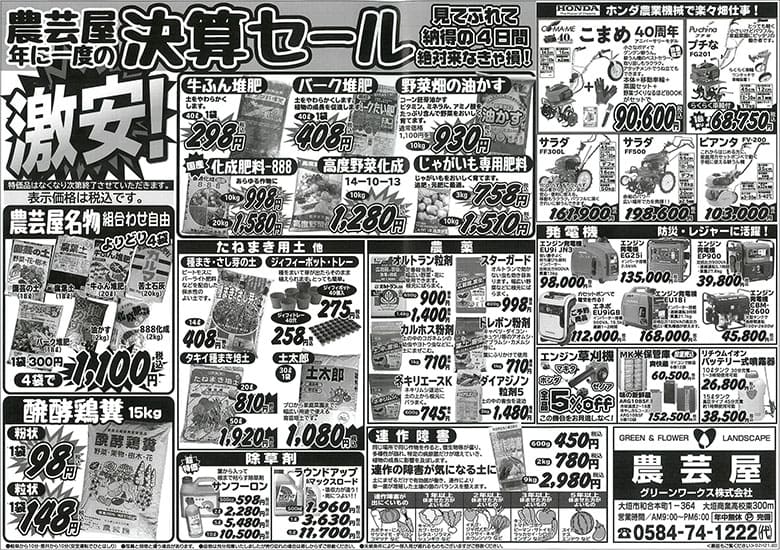 農芸屋では8月21日(金)から8月24日(月)年に一度の大決算セールを開催します。