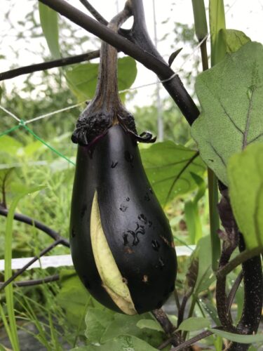 順調に育っていたナスが突然ぱっくりと割れる、表面にひび割れができるということがあります。