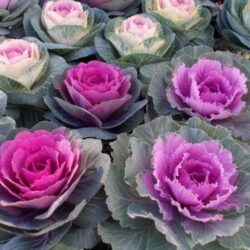 葉牡丹は観賞用として古くから品種改良がおこなわれており、色は緑とピンク、白、薄い黄色、紫のほか、黒みの強い暗緑色などがあり、大きさは直径数センチの小型から数十センチの大型まであるなどバリエーションに富んでいます。