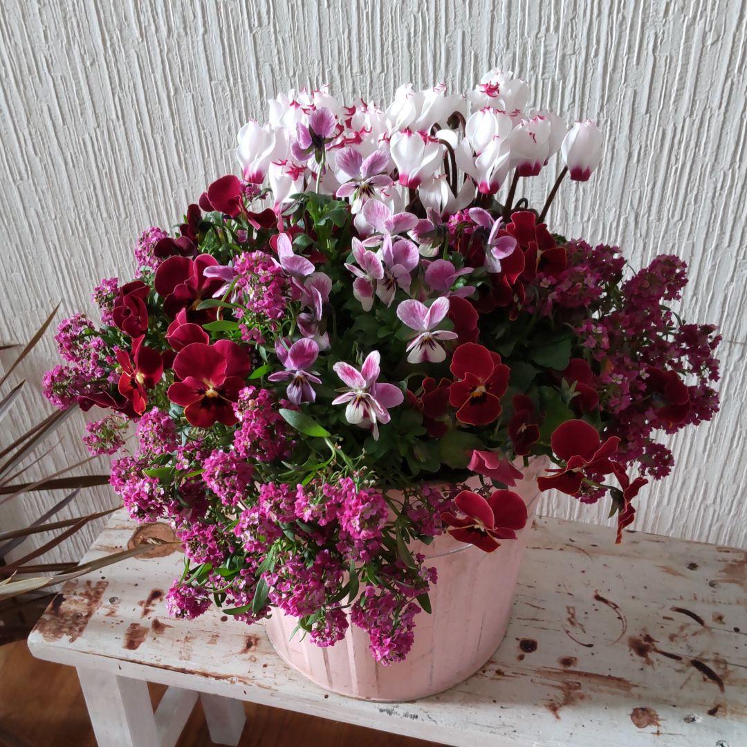 ガーデンシクラメンの育て方、管理作業はパンジー・ビオラと基本的に同じです。植え付けの際、根鉢を崩さないよう植えつける点が異なります。