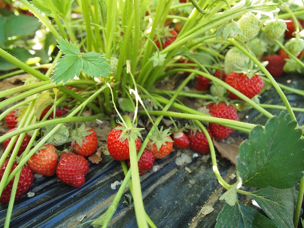 畑でイチゴを育てる時に使用する「マルチ」は、じゃがいもやさつまいも、トマト、ナスなど様々な作物に使われます。