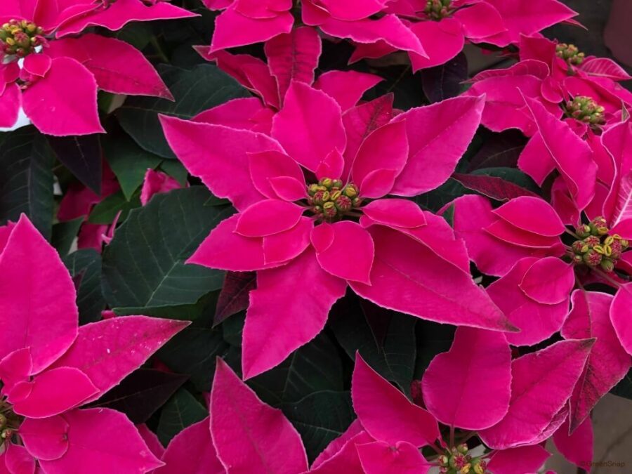 ポインセチアはメキシコ原産の植物で、実際の花よりも色鮮やかな葉(苞)が特徴的です。クリスマスの時期に合わせて、色鮮やかな姿を見せるように育てられます。