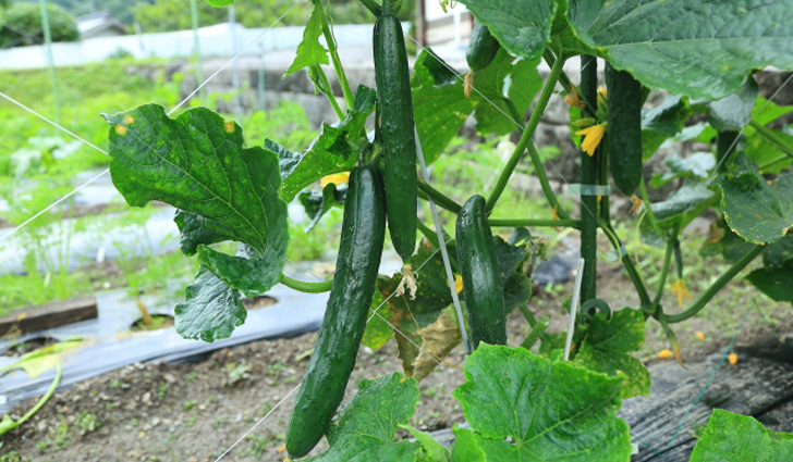 キュウリはつる性の植物なので、支柱やネットを利用して誘引します。これにより、空間を有効に使い、病害虫の予防や収穫の効率化が図れます。