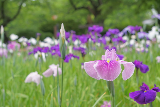 ハナショウブ(学名: Iris ensata)は、アヤメ科の植物で、その優美な花は日本の夏の風物詩です。植え付け時期は春(3月から7月)または秋(9月から11月)が最適で、一度根付くと少ない手入れで毎年美しい花を咲かせます。