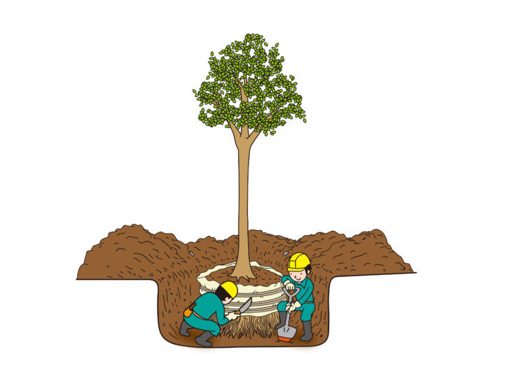 根回しとは、木を移植する前に根を一部切断し、新しい細い根を成長させる準備を行う作業です。これにより、移植後に木が新しい環境に馴染みやすくなります。