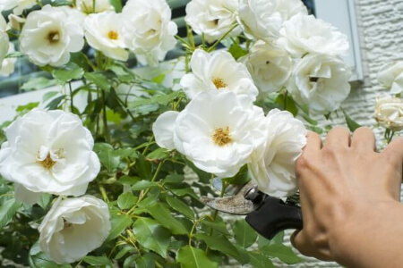 外向きの芽の上約1cmで切ると、新しい芽が外側に向かって成長します。これにより、株全体が開いた形に育ちます。 - 切る角度