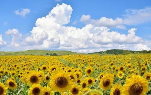 夏といえばやはりひまわり。大きな花が太陽の方向を向いて咲く様子は、夏のシンボル的存在です。草丈が高いものから小型のものまでさまざまな品種があり、切り花や鉢植えでも楽しめます。